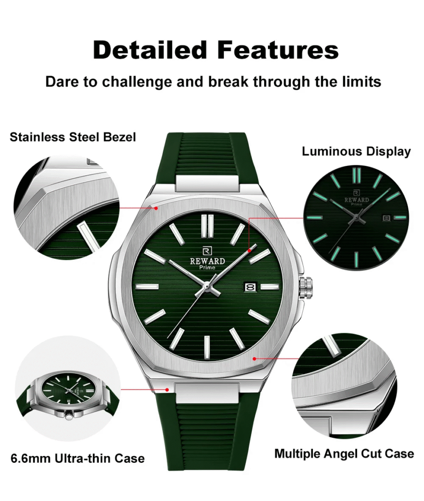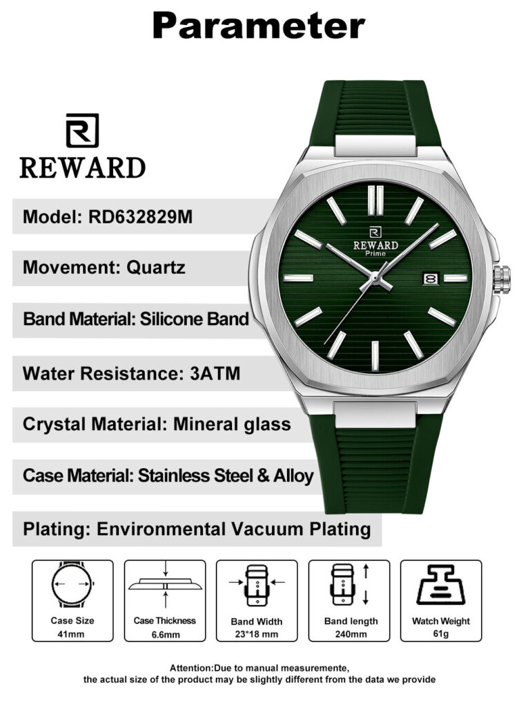Reward Prime Silicone Waterproof Quartz Watch is a sophisticated timepiece that merges style, durability, and functionality. Designed for both casual and formal occasions, it features a sleek square case that adds a modern touch to any outfit.